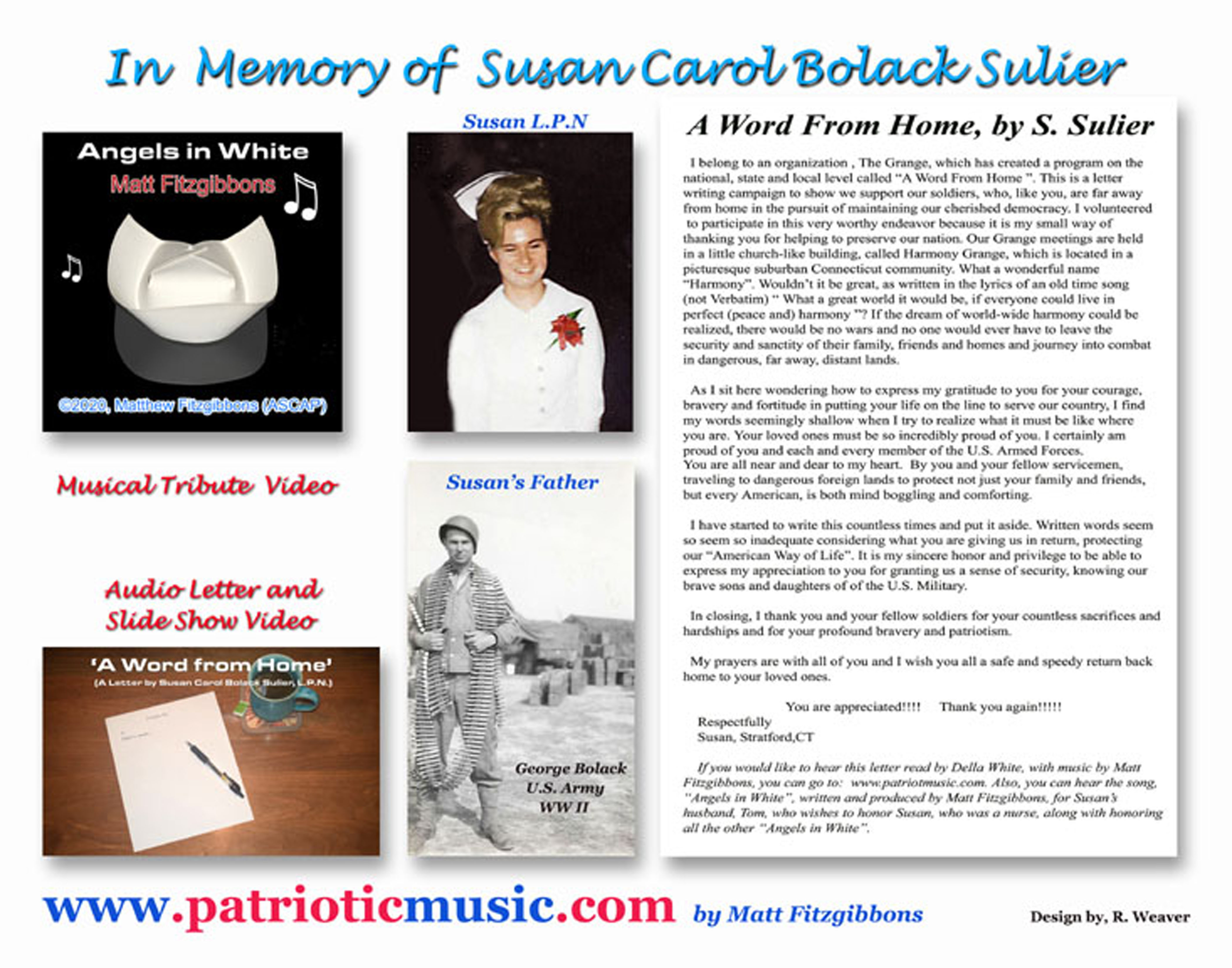 In Memory of Susan Carol Bolack Sulier: A Word from Home READ MORE LISTEN TO LETTER SET TO MUSIC