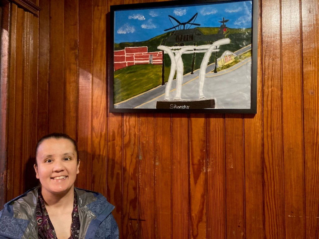 'Veterans Guardian' The Stratford Veterans Museum is proud to have on display the painting "Veterans Guardian" by artist Christina Bevans. The painting shows the Blackhawk helicopter on display outside of the Sikorsky Aircraft facility in Stratford. Christina is the daughter of volunteer Mark Bevans. PHOTO