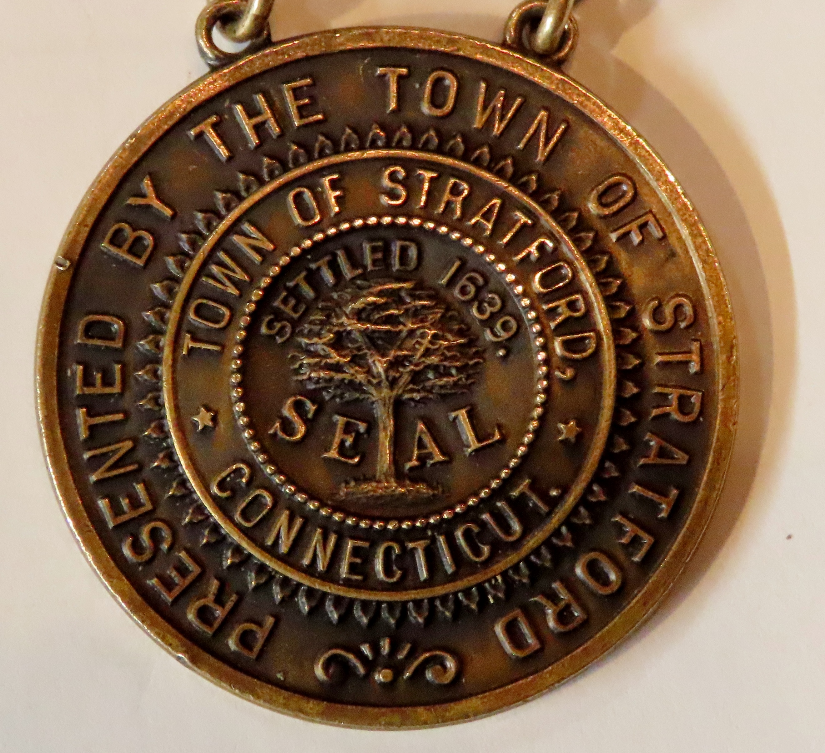 A Medal Of Service Following the First World War, the town of Stratford presented its returning citizens who served in the Armed Forces with a commemorative medal (Front, Back). This sample of the "Stratford medal" was donated to the Stratford Veterans Museum by Frank Kecko. The medal had been presented to his father, Sgt. Frank E. Kecko, who served with Headquarters Company, 26th Infantry Division and received a Silver Star.