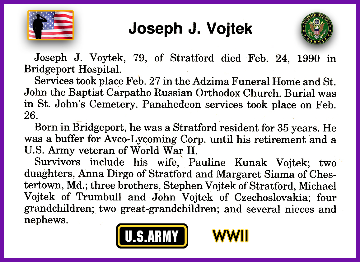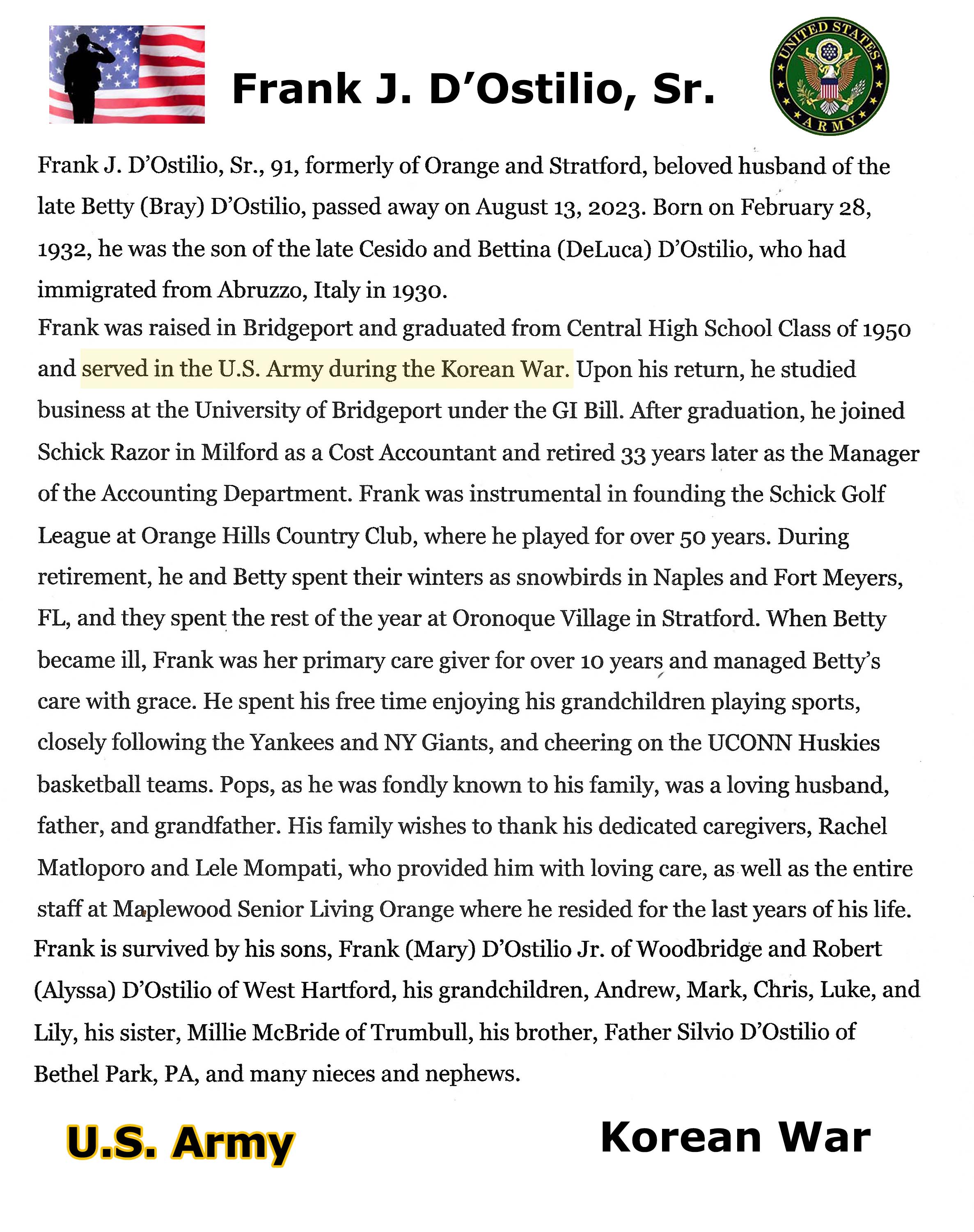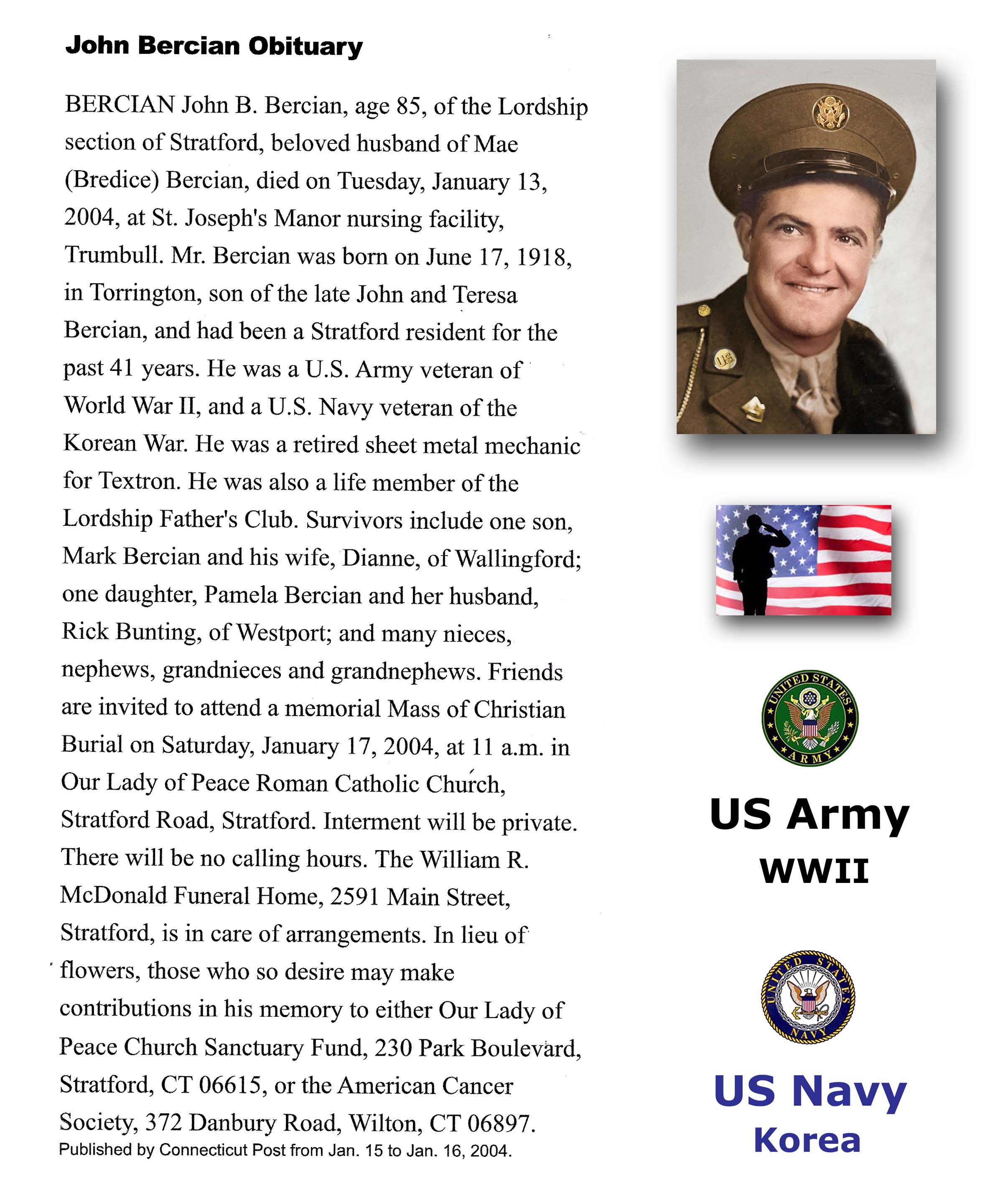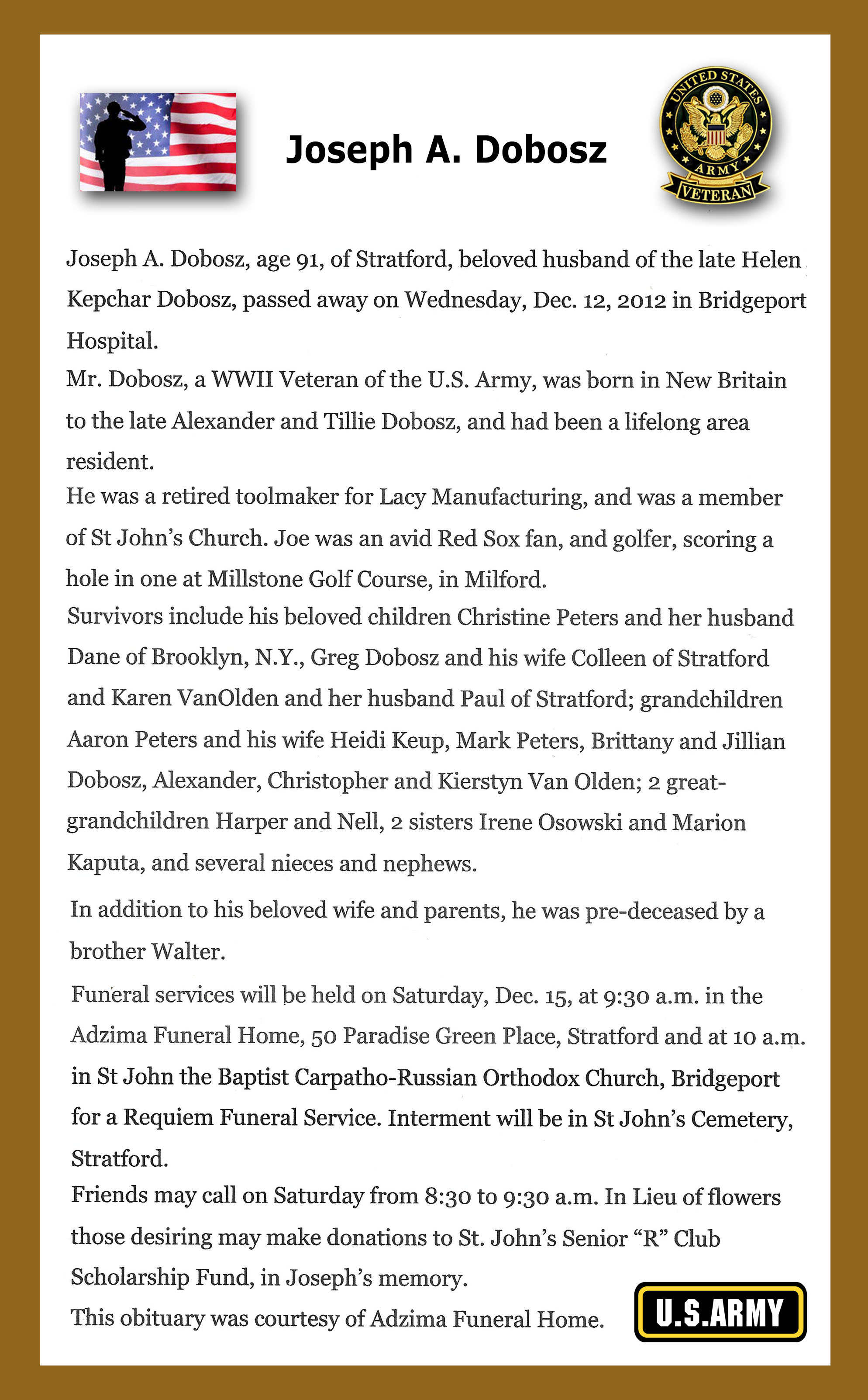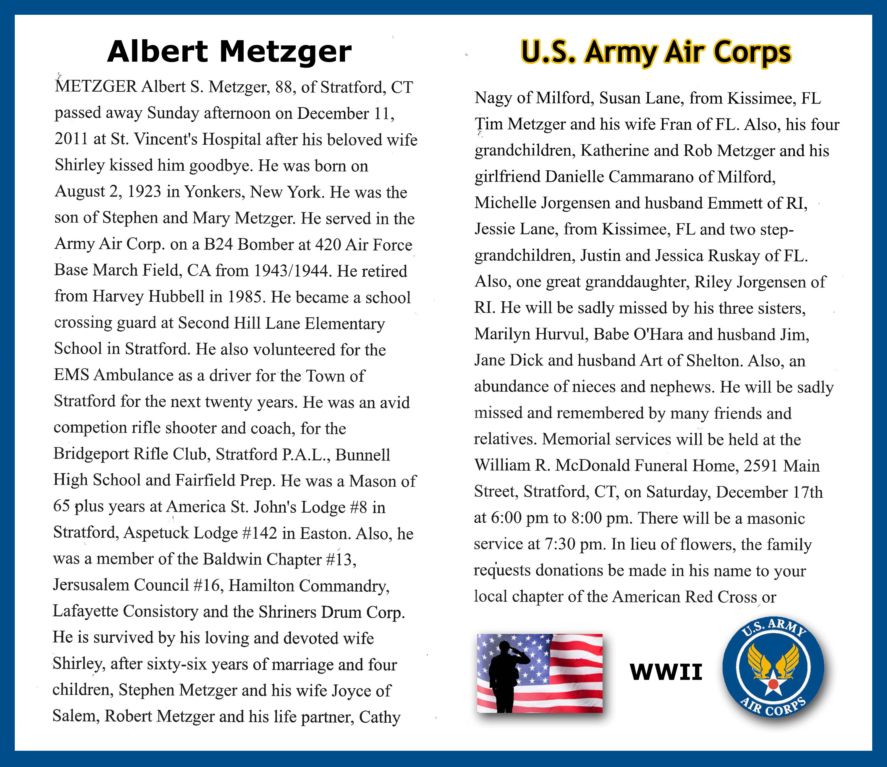 We are in the process of collecting stories of those Stratford men and women who have honorably served in our country’s Armed Forces. We will continue to add to this page as we are able to record the accounts of more of our veterans, so please be sure to visit frequently.
