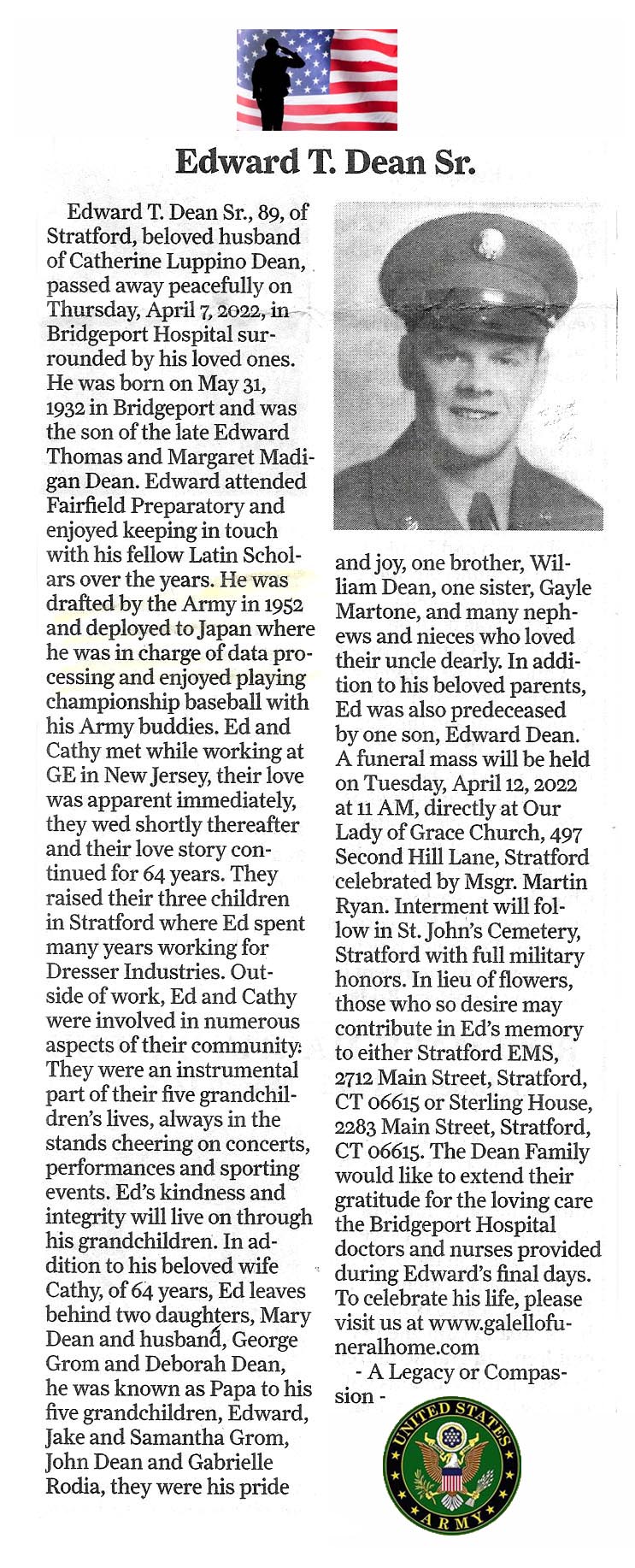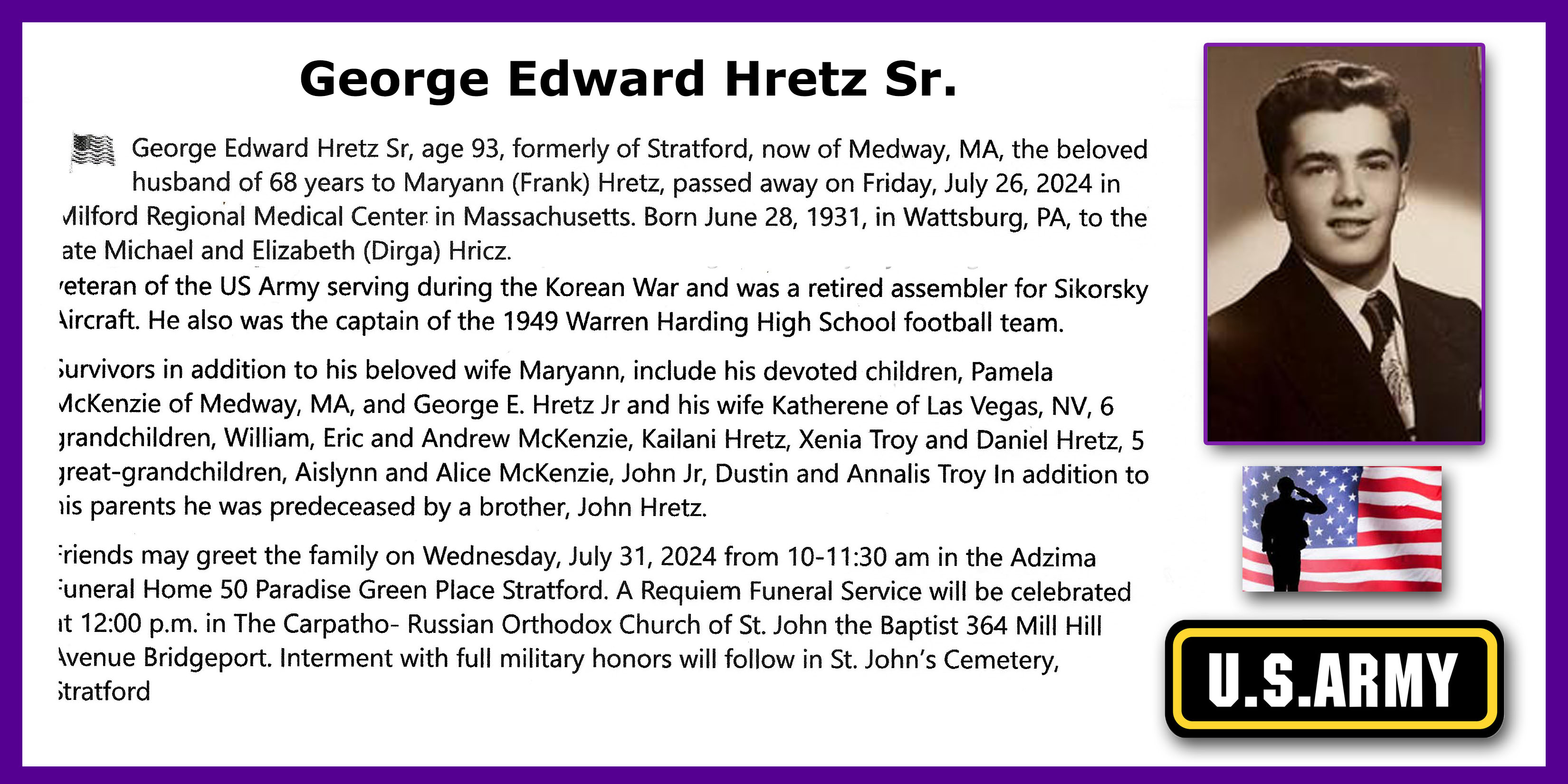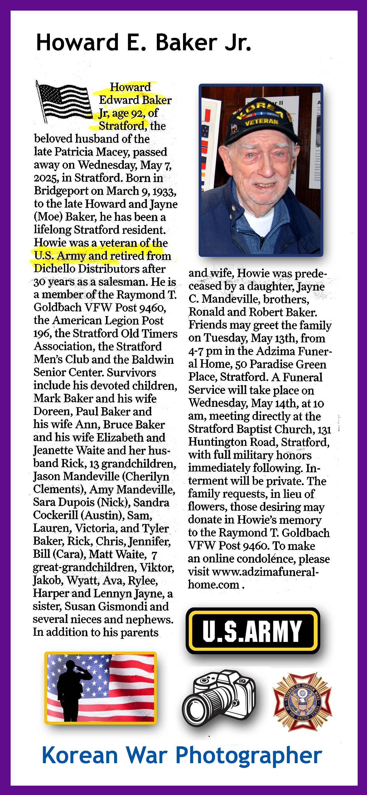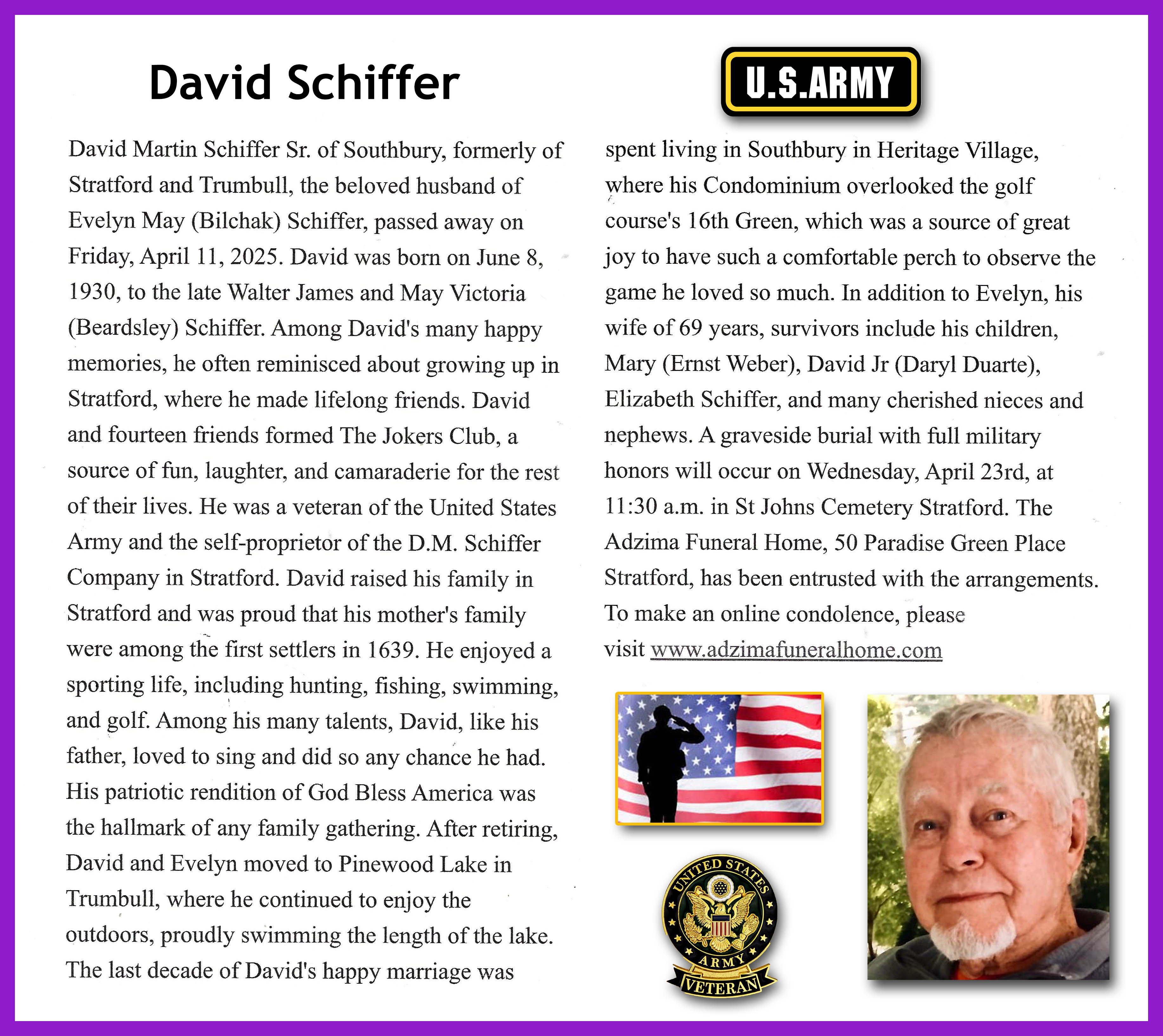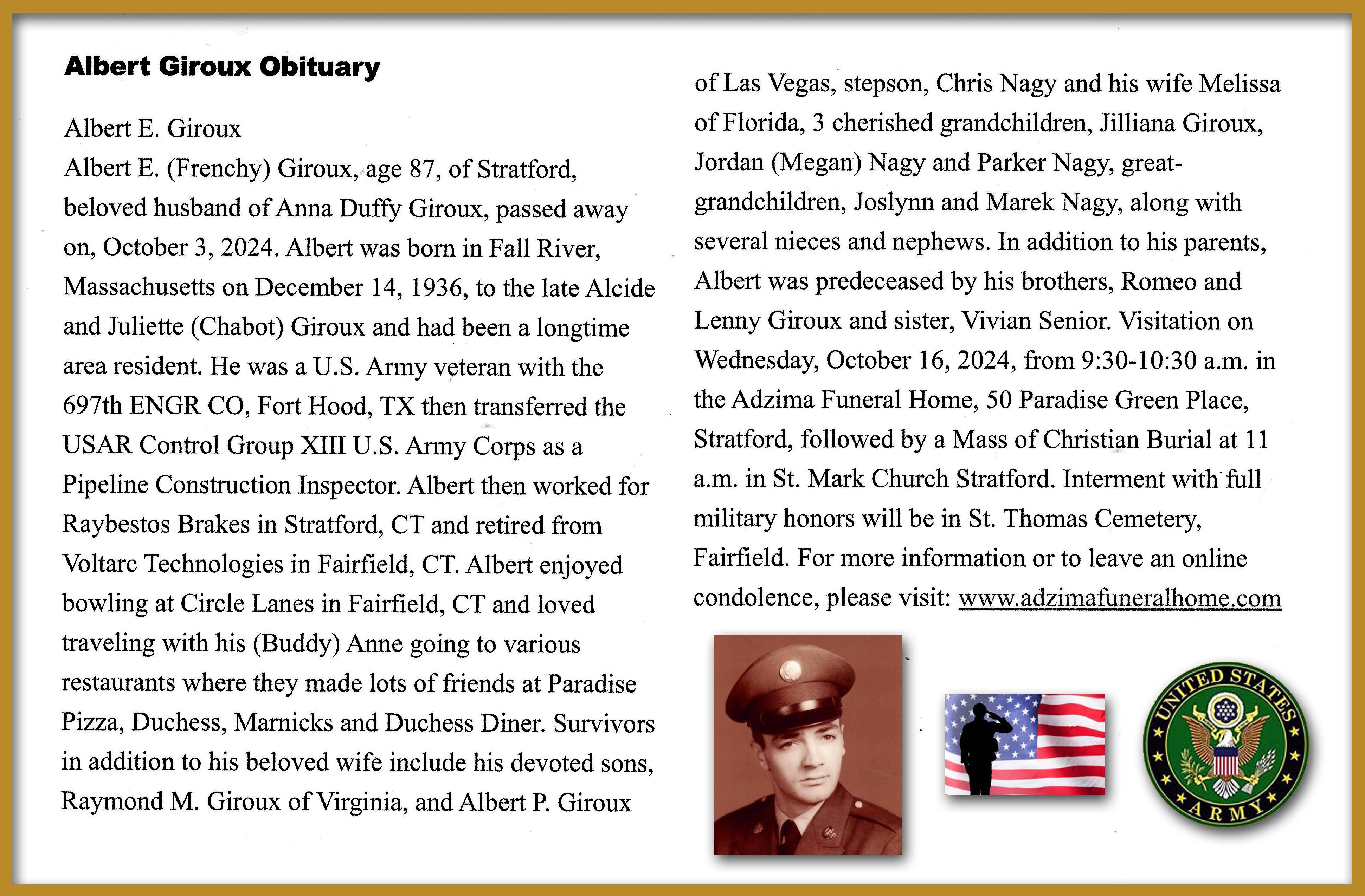 We are in the process of collecting stories of those Stratford men and women who have honorably served in our country’s Armed Forces. We will continue to add to this page as we are able to record the accounts of more of our veterans, so please be sure to visit frequently.