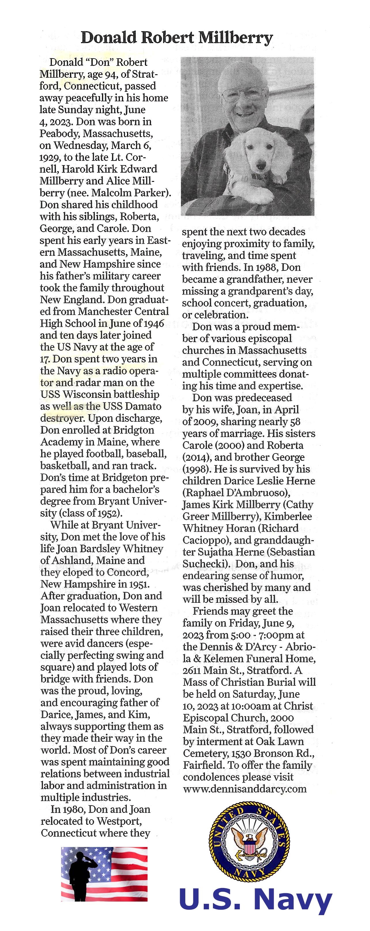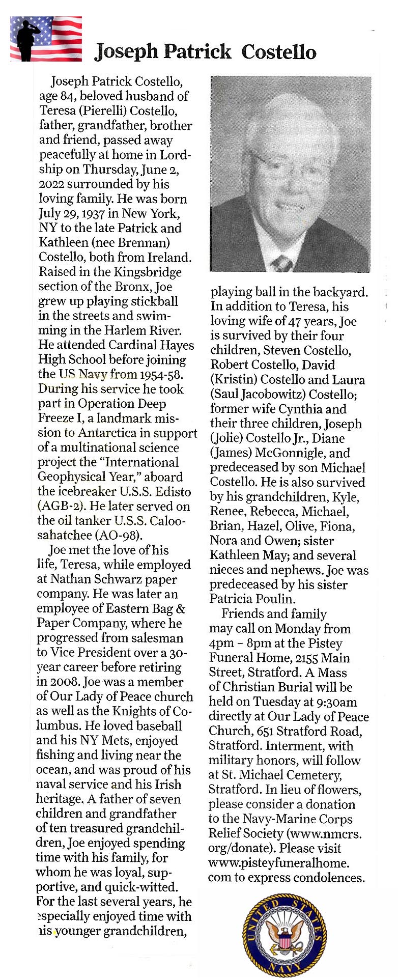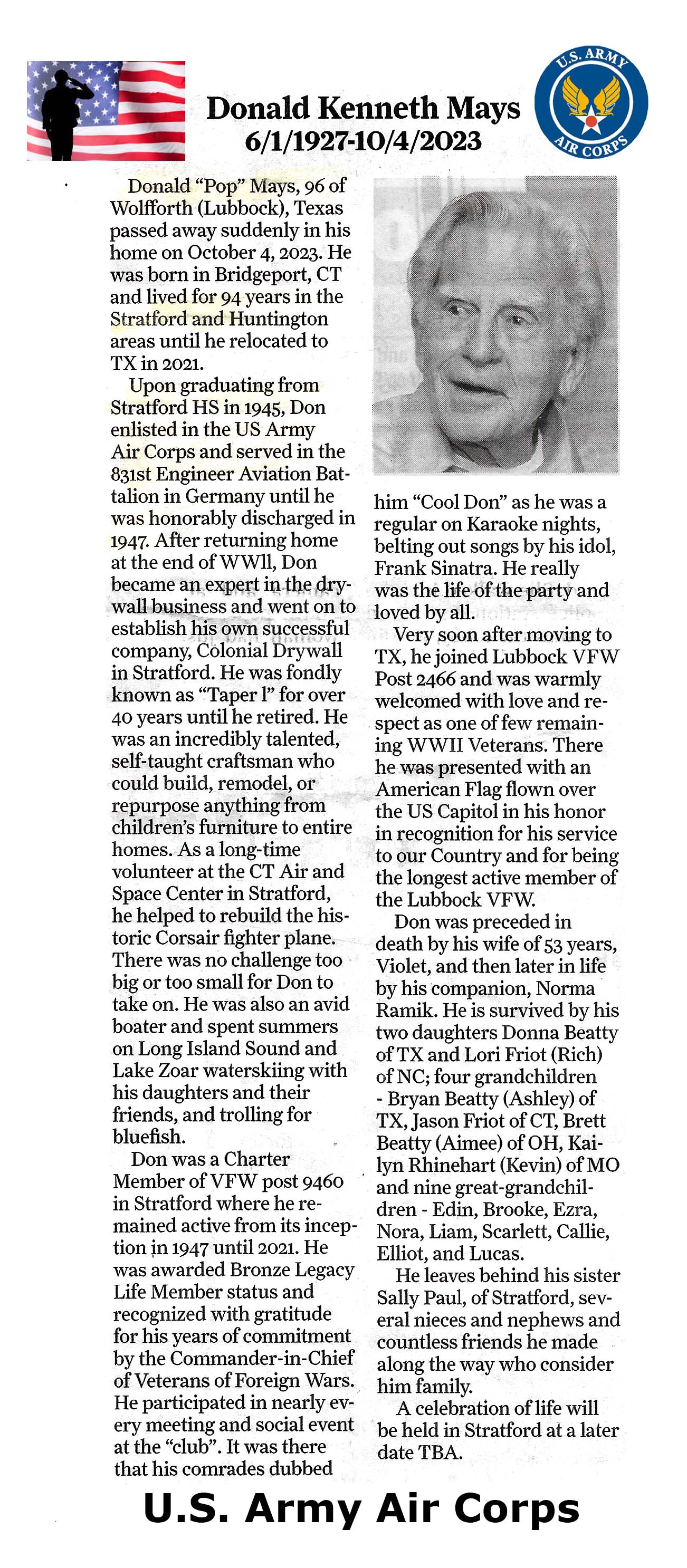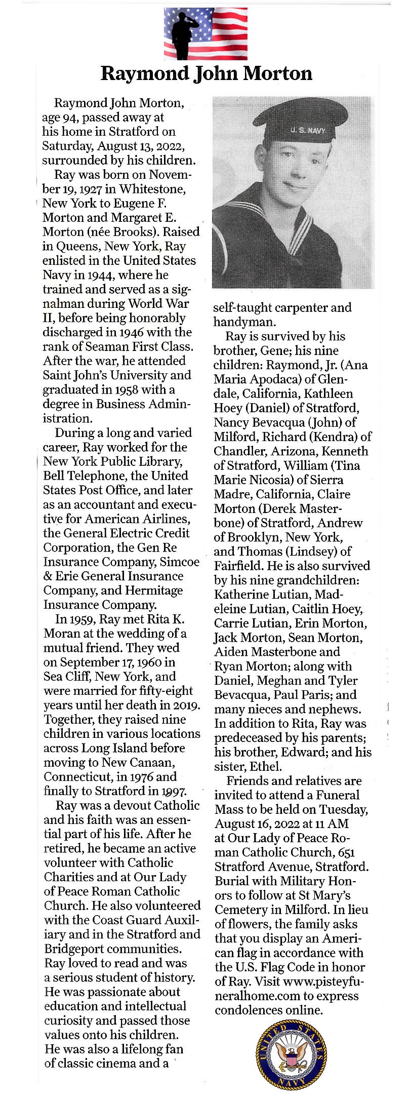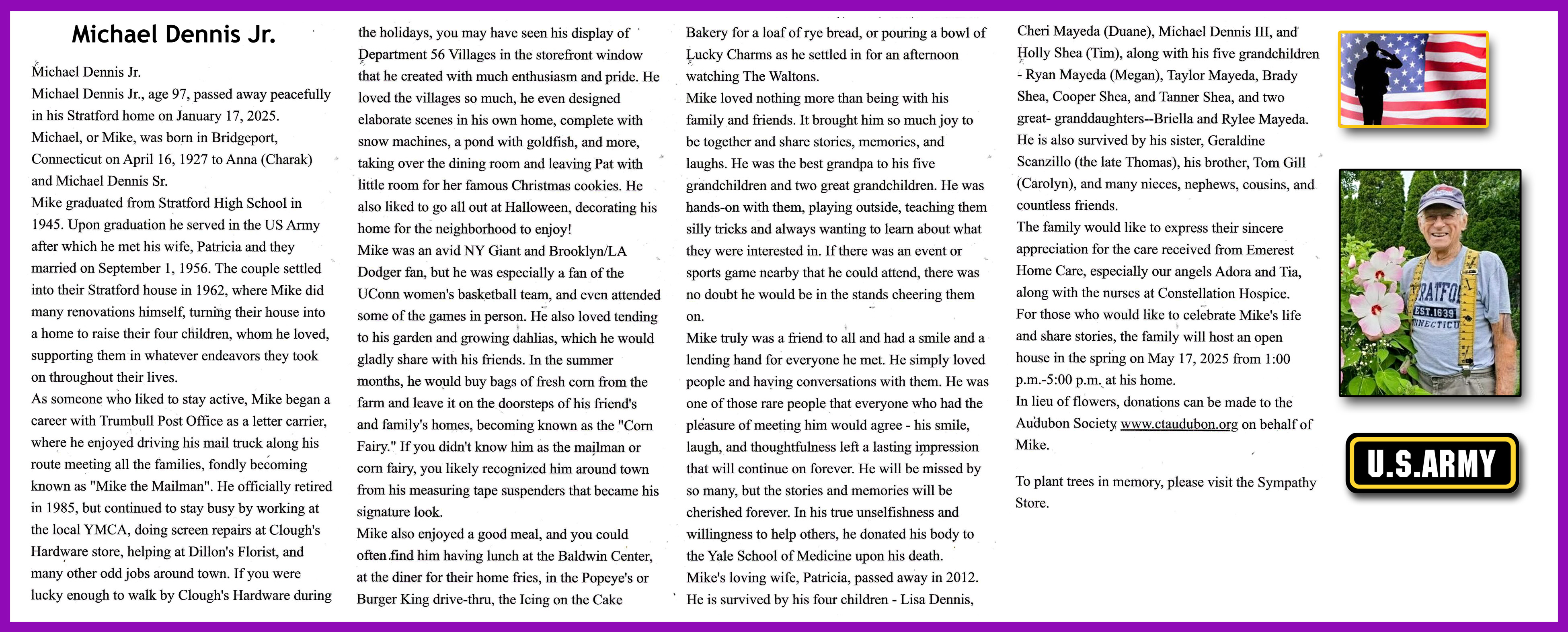 We are in the process of collecting stories of those Stratford men and women who have honorably served in our country’s Armed Forces. We will continue to add to this page as we are able to record the accounts of more of our veterans, so please be sure to visit frequently.